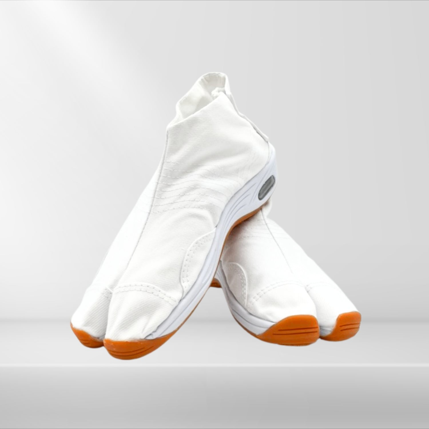 足袋の起源は諸説ありますが、5世紀頃に中国から日本へ伝わった「襪(しとうず)」という履き物が発展したものと考えられています。襪は、富裕層が用いる指の分かれていない鹿皮の一枚物でした。平安時代になると、貴族が履いていた襪とは別に、武家が主に着用する「単皮(たんび)」と呼ばれる履き物が普及しました。単皮は、革製の足袋で、足袋の語源ともされています。室町時代から安土桃山時代にかけては、特に紫色の革足袋が流行し、今日の歌舞伎、舞踊、狂言の色足袋に名残がみられます。江戸時代になっても革製の足袋が多かったのですが、1657年に起こった明暦の大火の後、防火用として庶民がこぞって革の羽織などを買い求めるようになり、皮革の値段が高騰しました。そのため、足袋に廉価な木綿を使ったところ、肌触りがよく履き心地がよいと評判になり、急速に普及していきました。江戸時代以降、足袋は庶民の間で広く履かれるようになりました。特に、農民や職人にとって足袋は必需品であり、日常生活や仕事に欠かせない履き物でした。明治時代に入ると、洋靴が普及し始めたことに伴い、足袋を履く人が徐々に減っていきました。しかし、第二次世界大戦後には、再び足袋が脚光を浴びるようになり、現在では祭りやイベントなどの行事での定番履き物として親しまれています。