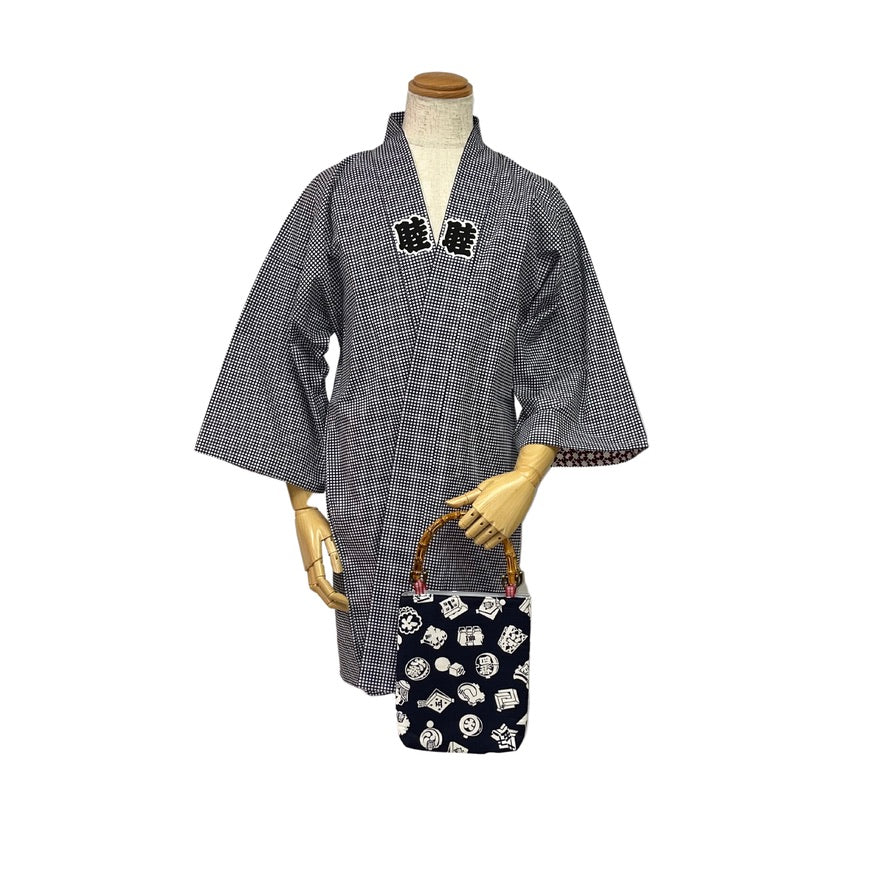 丸直商店オリジナル・バンブー手提げは、江戸一の手拭い生地を使用し、お祭りに便利なサイズに仕上げました。