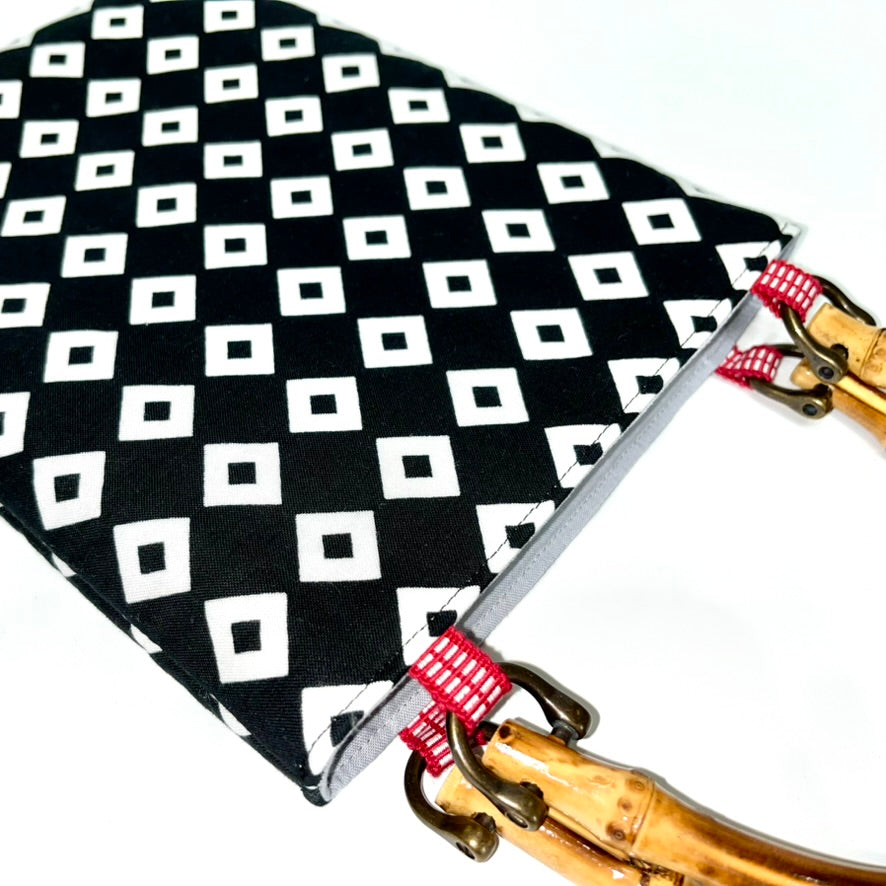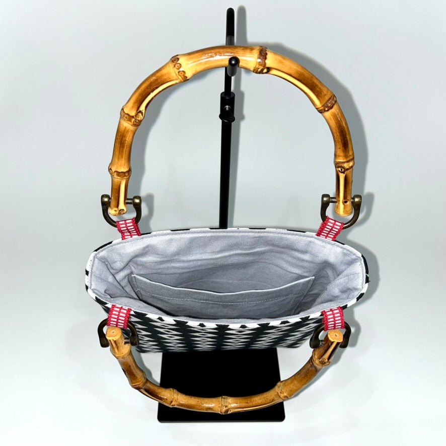 丸直商店オリジナル・バンブー手提げは、江戸一の手拭い生地を使用し、お祭りに便利なサイズに仕上げました。