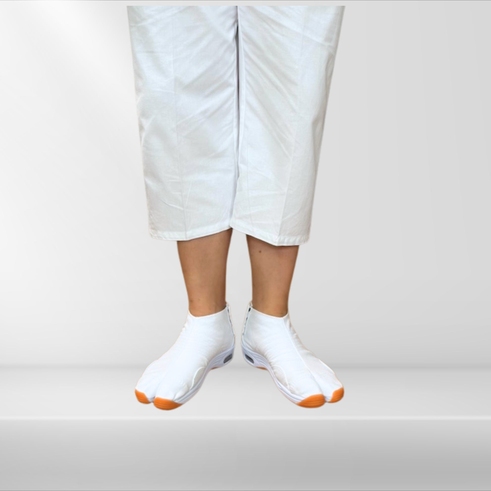 - 本製品は通常の地下足袋を短く加工しているため、強い負荷が掛かった際に脱げたりこはぜを抑える紐が切れる可能性がございます。