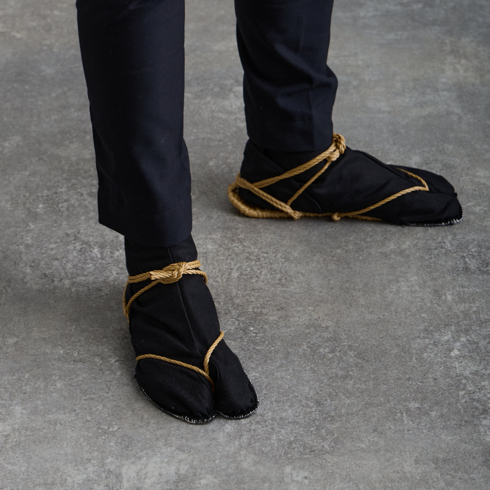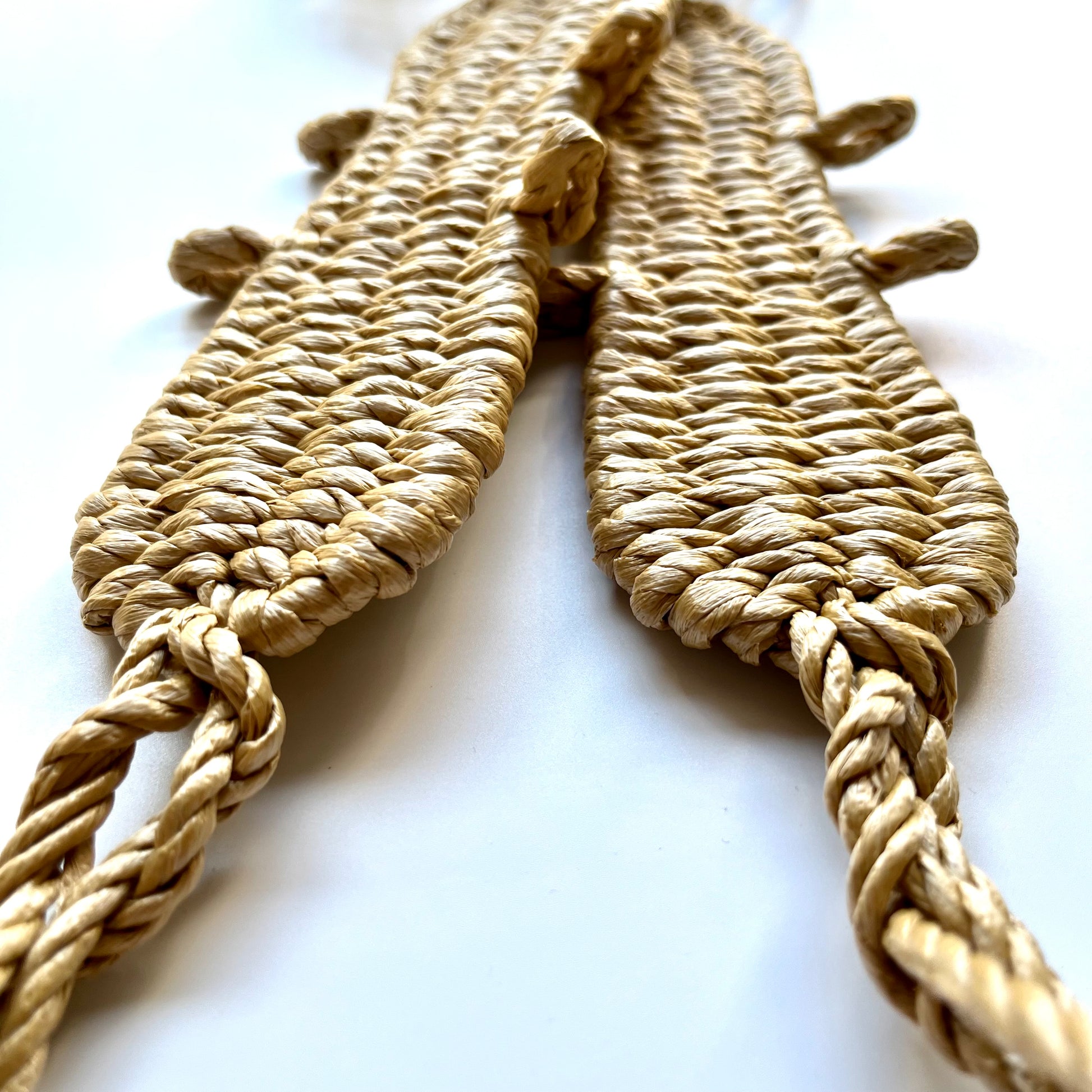 わらじは、つま先がはみ出るため、わらじ掛けを履いてご使用下さい。