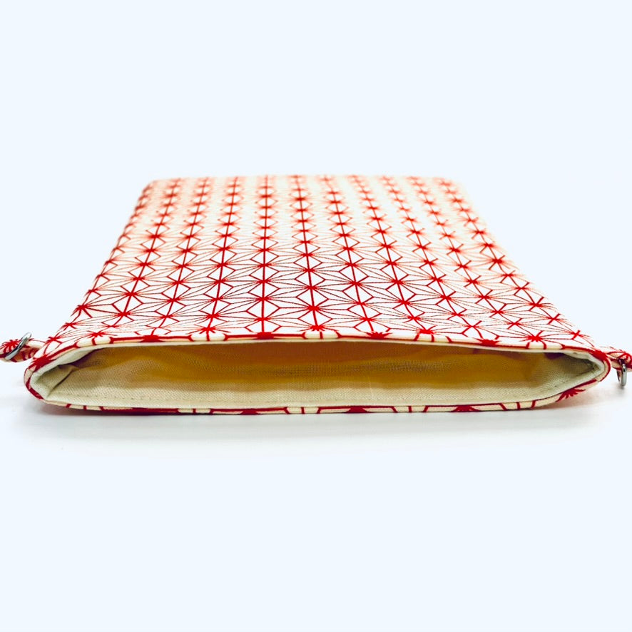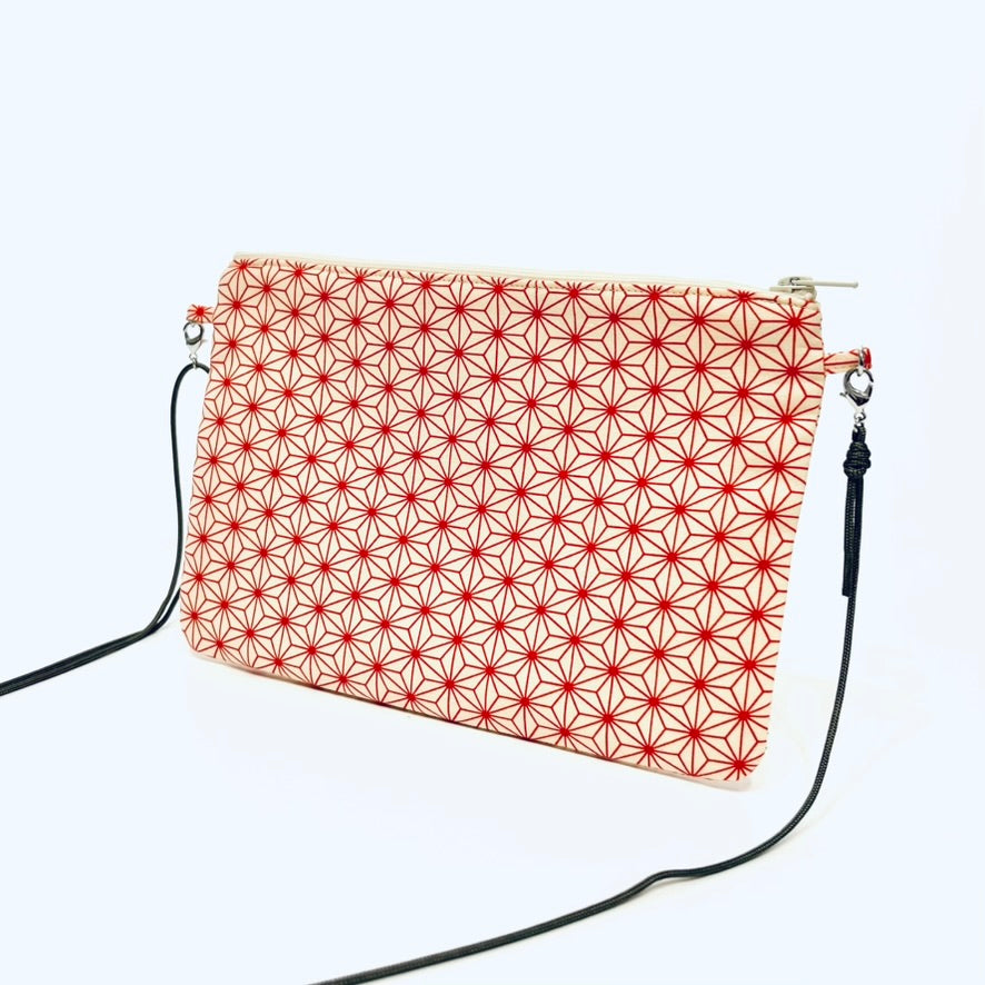 丸直商店オリジナル・肩掛けポシェットは、伝統的な江戸一手拭い生地を使用した、スタイリッシュで機能的なアイテムです。縦型と横型(チャック付き)の2種類があります。