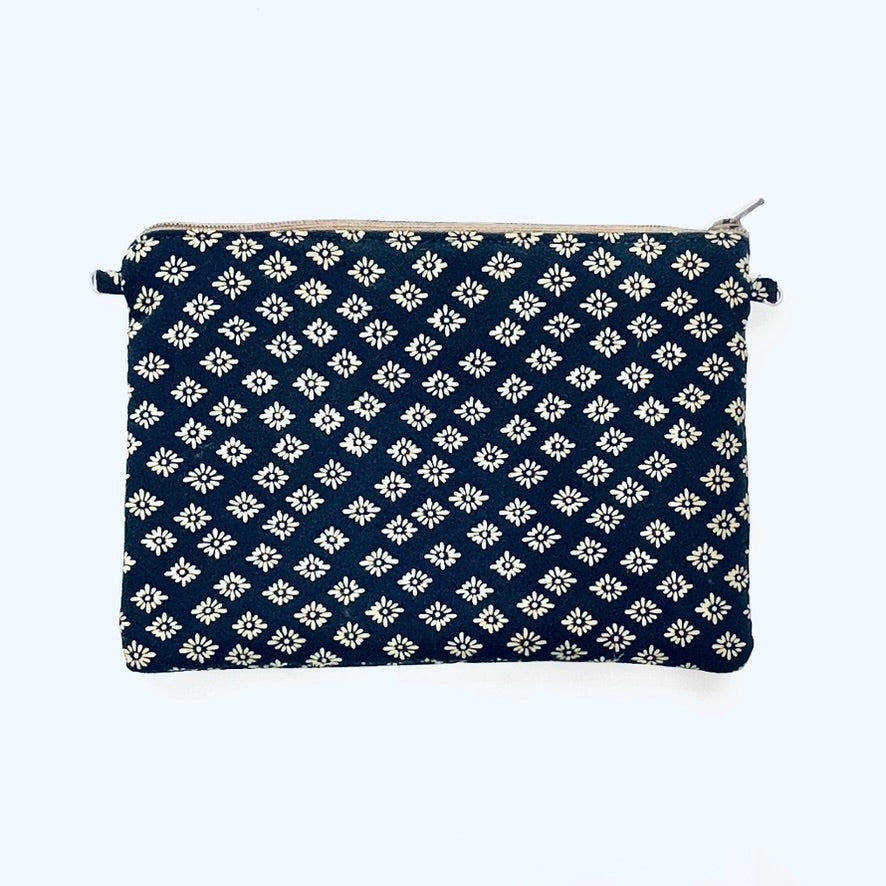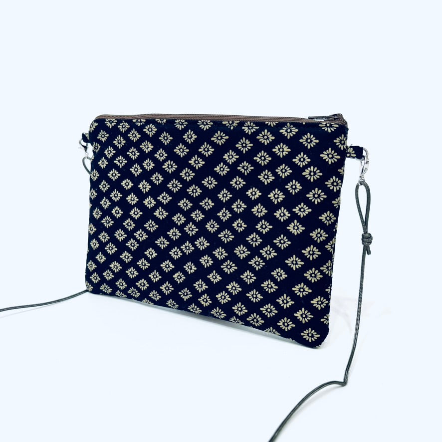 丸直商店オリジナル・肩掛けポシェットは、伝統的な江戸一手拭い生地を使用した、スタイリッシュで機能的なアイテムです。縦型と横型(チャック付き)の2種類があります。