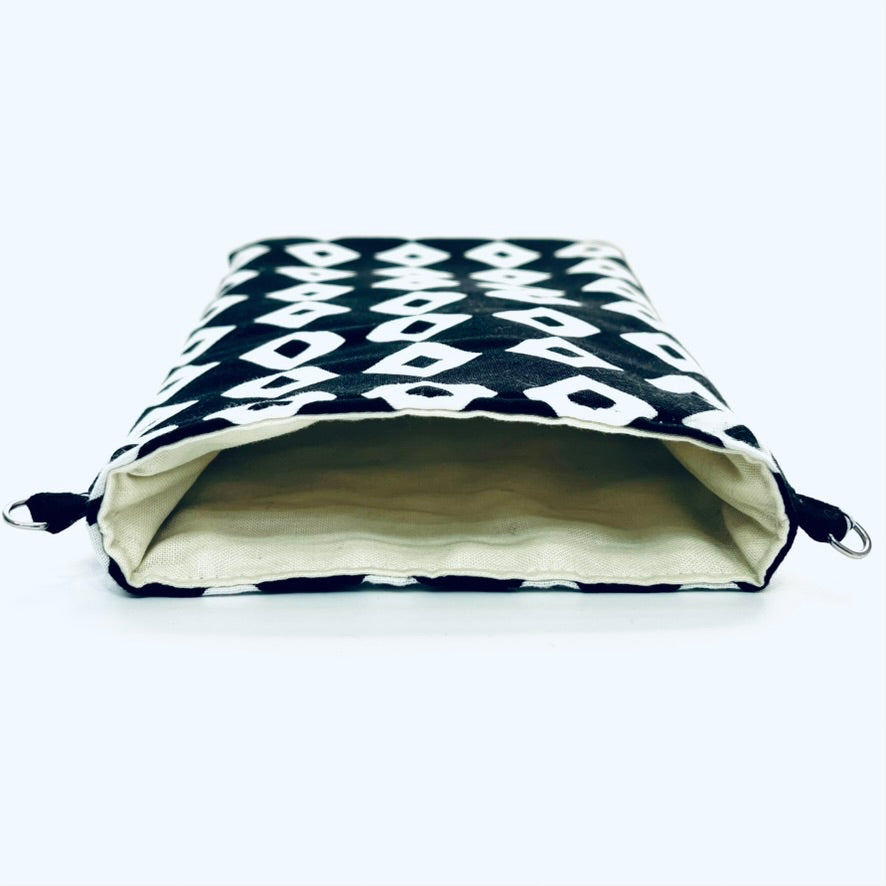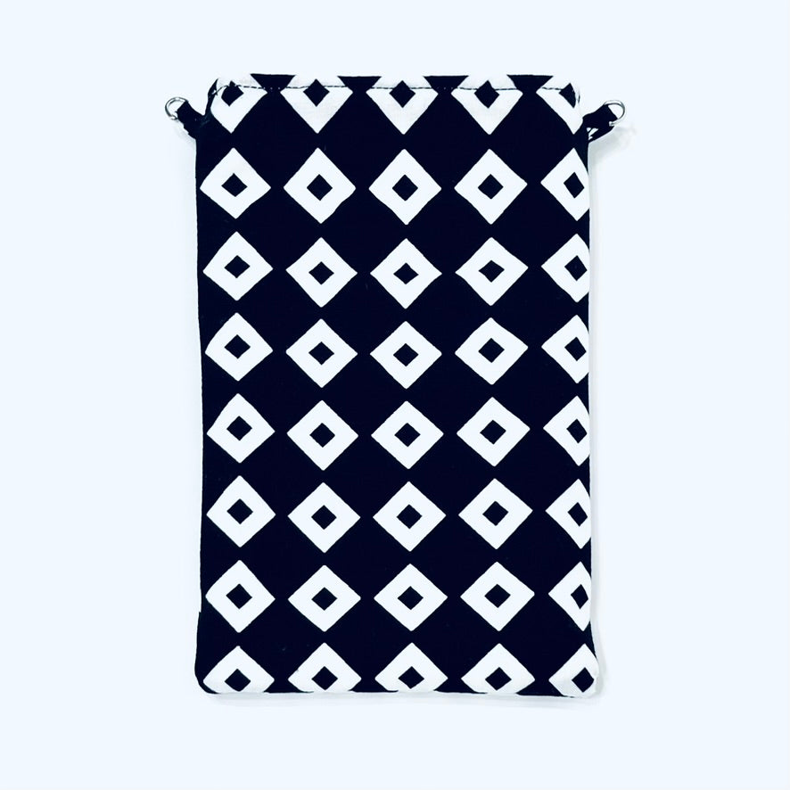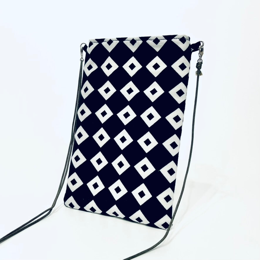 丸直商店オリジナル・肩掛けポシェットは、伝統的な江戸一手拭い生地を使用した、スタイリッシュで機能的なアイテムです。縦型と横型(チャック付き)の2種類があります。