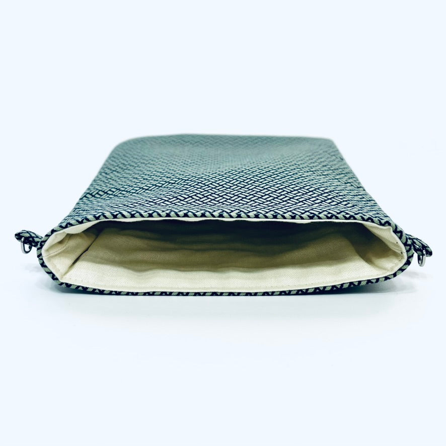 丸直商店オリジナル・肩掛けポシェットは、伝統的な江戸一手拭い生地を使用した、スタイリッシュで機能的なアイテムです。縦型と横型(チャック付き)の2種類があります。