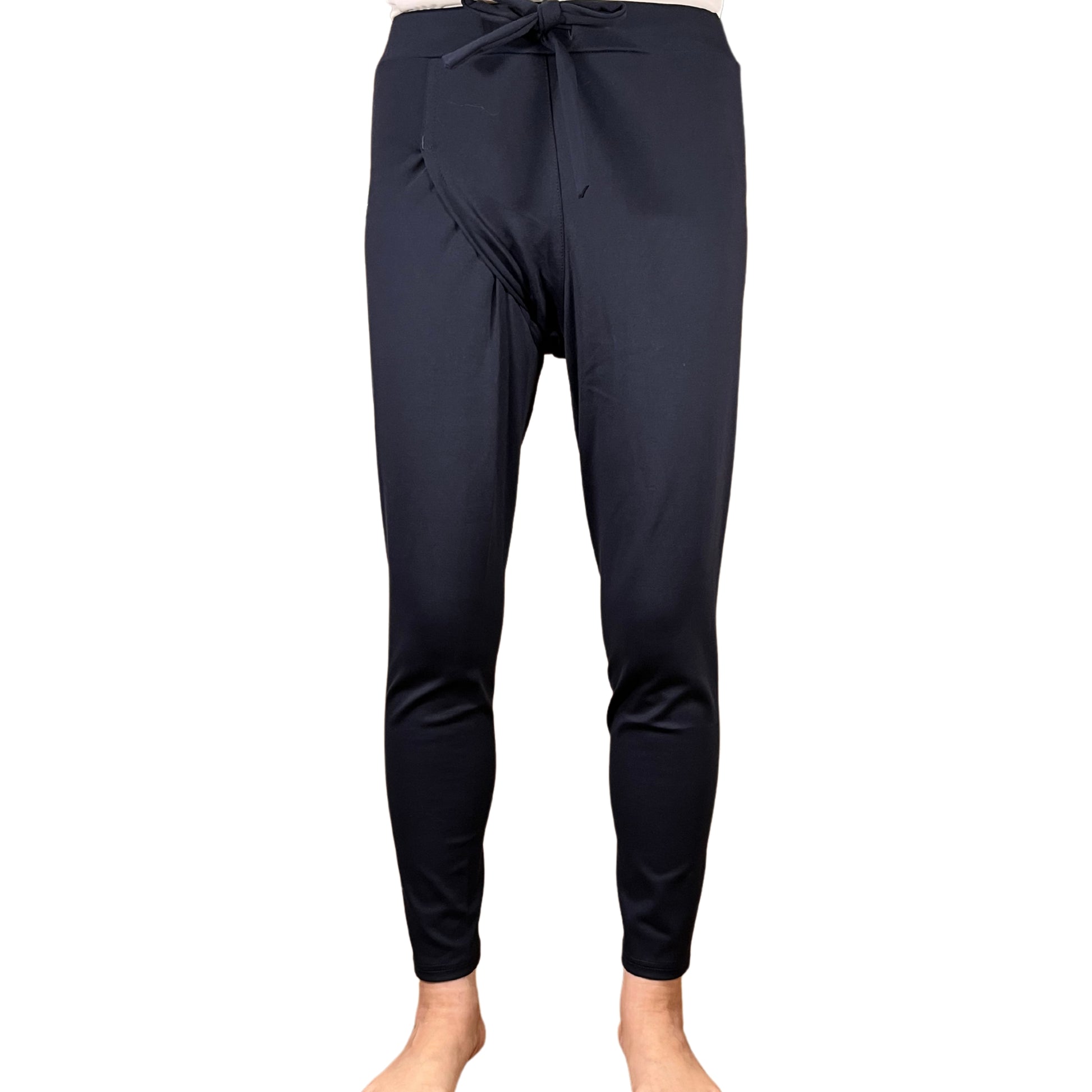股引の伝統的な曲線や縫製方法をそのまま活かしつつ、ズボンのようにスタイリッシュに履ける新しい形状を採用、スネ・ふくらはぎの曲線にダボつきがないため野暮ったさがなく、こだわり抜いた一品です。